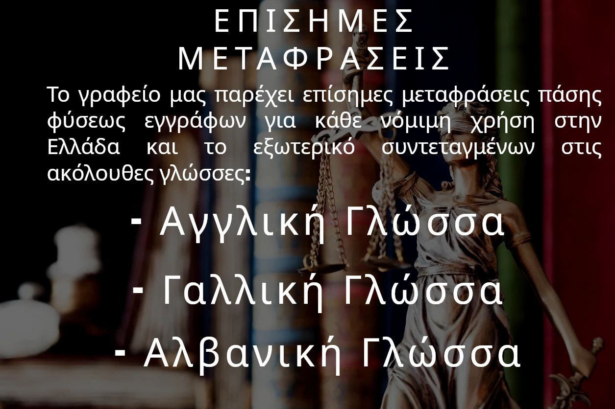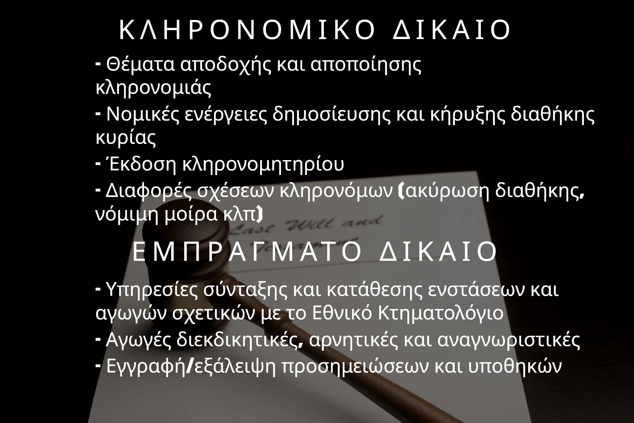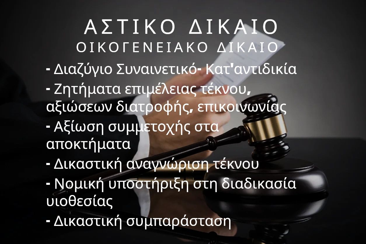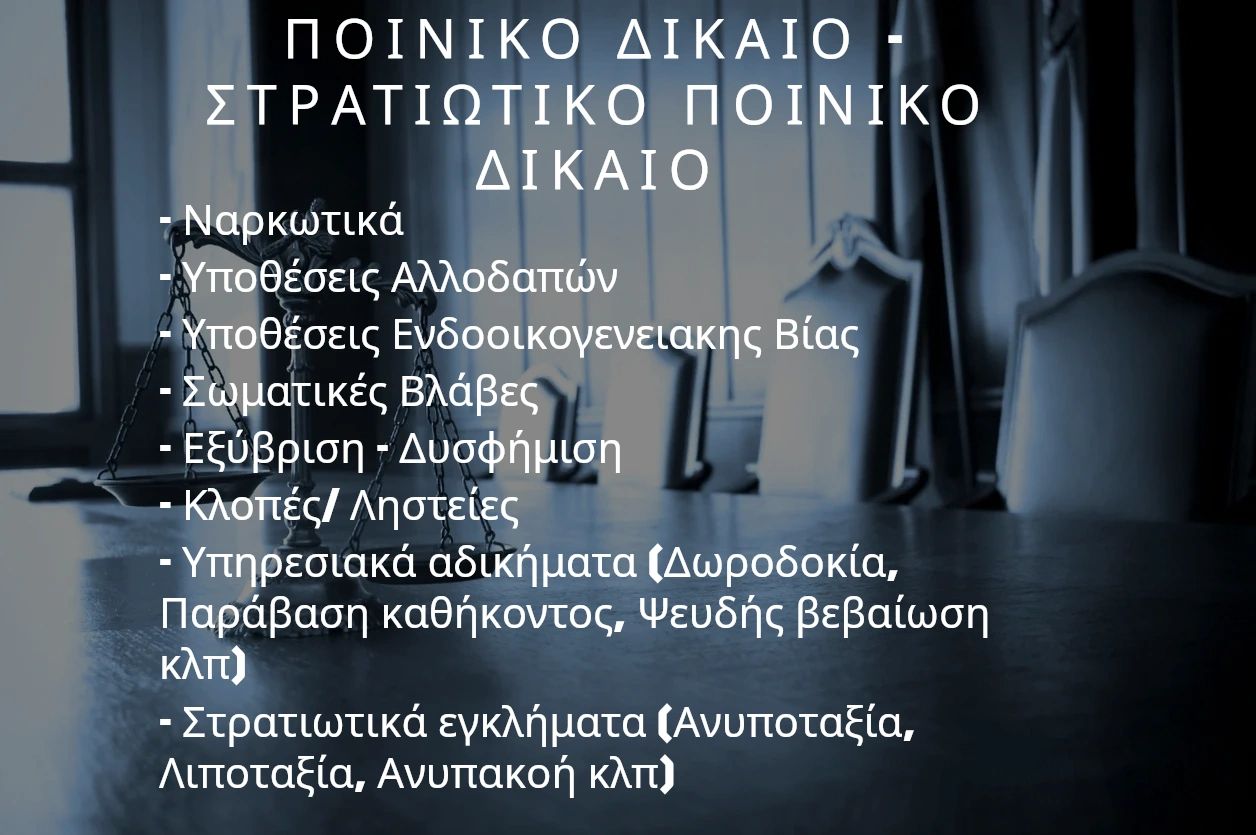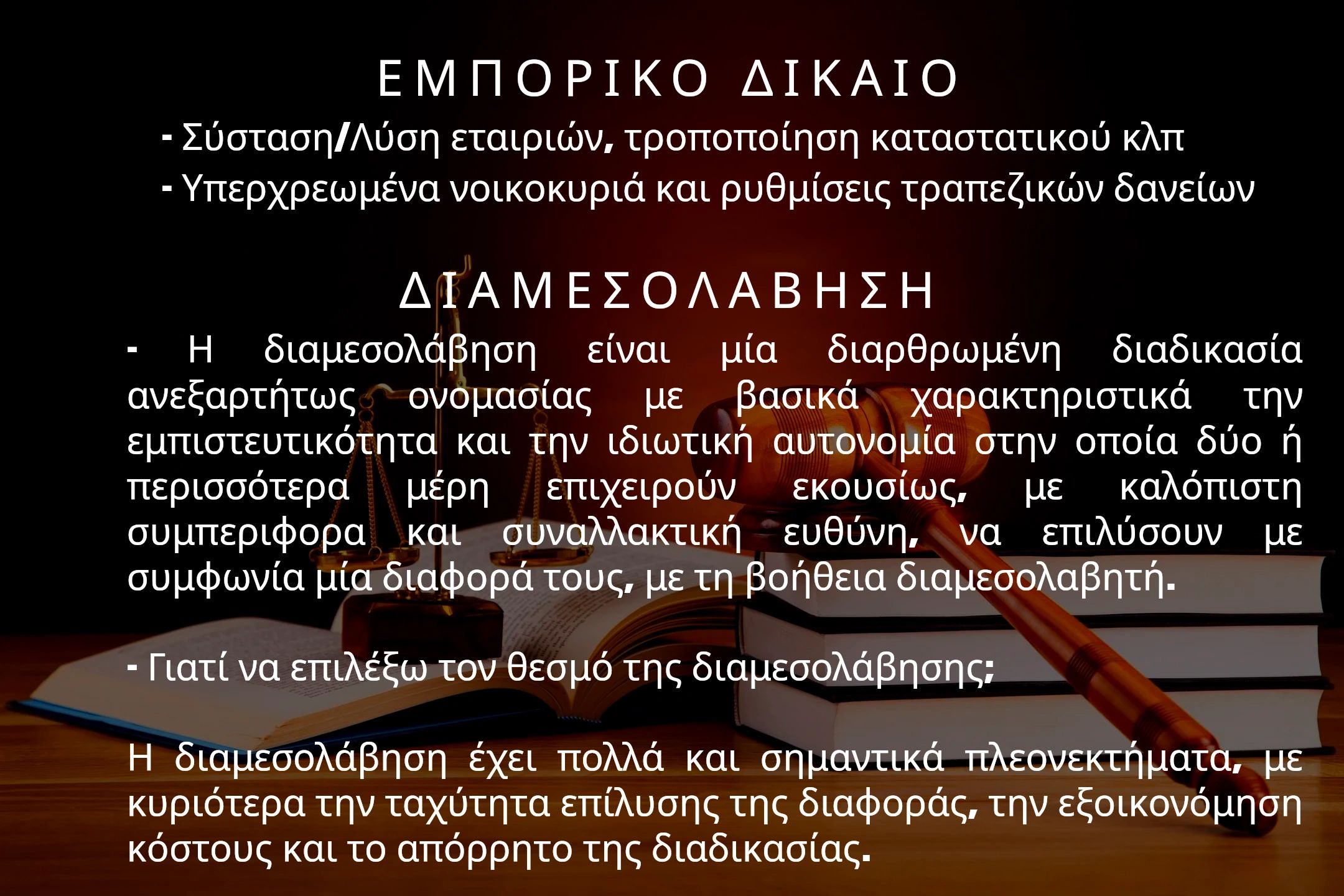 υπηρεσίες στους τομείς του Αστικού, Ποινικού και Εμπορικού Δικαίου με συνέπεια και